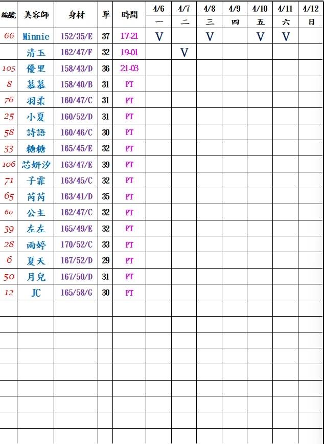 美容師可預約時間: